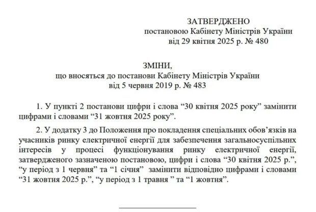 Це продовження передбачено ухвалою № 480 від 29 квітня 2025 року. Документ офіційно змінює попередню дату закінчення терміну дії, забезпечуючи постійну цінову стабільність для населення цього періоду.