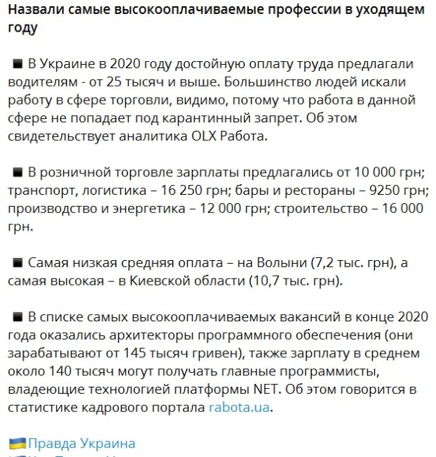 Появилась информация о самых высокооплачиваемых профессий в 2020 году. Об этом сообщает телеграм-портал Правда Украина.