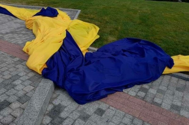 Раньше Украинци писали, что в Киеве очевидцы заметили, что на вершине 90-метрового флагштока, установленного ко Дню Независимости, находится кривой государственный герб.
